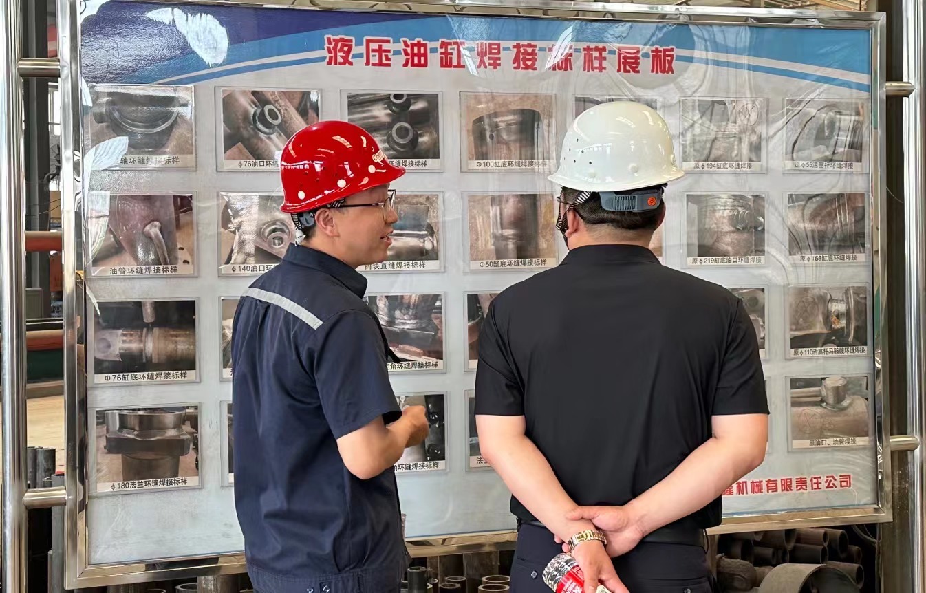 在觀摩過程中,一車間主任孫雷為客戶介紹液壓油缸的整個生產(chǎn)過程:從焊接工藝、清洗工藝到裝配工藝,有序的生產(chǎn)流程、嚴格的質(zhì)量控制,讓客戶留下了深刻的印象。